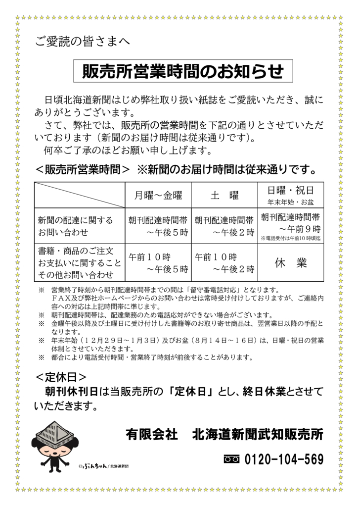 日頃北海道新聞はじめ弊社取扱新聞をご愛顧いただき、誠にありがとうございます。